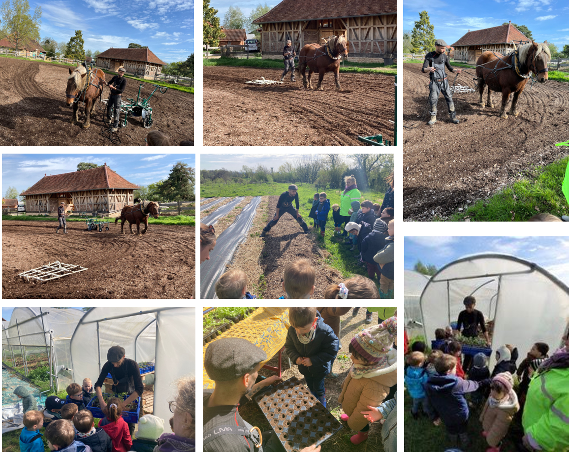 Les élèves ont rencontré Manu, le maraicher, et Dauphin, le cheval, qui font équipe pour travailler la terre.
