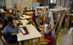 Les premières notes de musique ont commencé à résonner à l’école de Saillenard grâce aux carillons et aux  harpes en carton fabriquées le week-end du 18-19 septembre avec l’aide de bénévoles, enseignantes et membres de l’inspection.